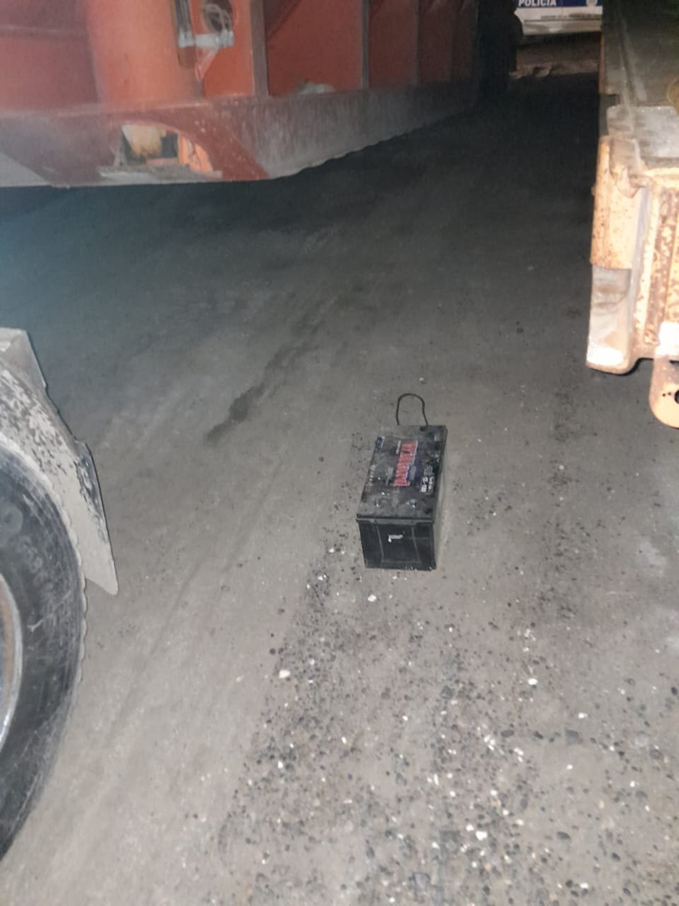 Los efectivos se dirigieron al lugar y el testigo indicó que el ladrón saltó el paredón, dañó el sistema de alarmas y se dirigió hacia un camion Scania 360 y le sustrajo la batería marca Willard 180.