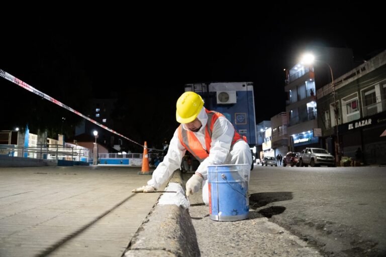 Las tareas que comenzaron a fines de julio, continúan en la intersección de las calles San Martín y España, e incluyen el pintado de cordones, tareas de limpieza, mantenimiento de calzada y señalética horizontal. Dicha intervención se realiza en horario nocturno para no afectar el normal desenvolvimiento de la vida cotidiana del centro, que durante el día concentra gran flujo vehicular y peatonal.