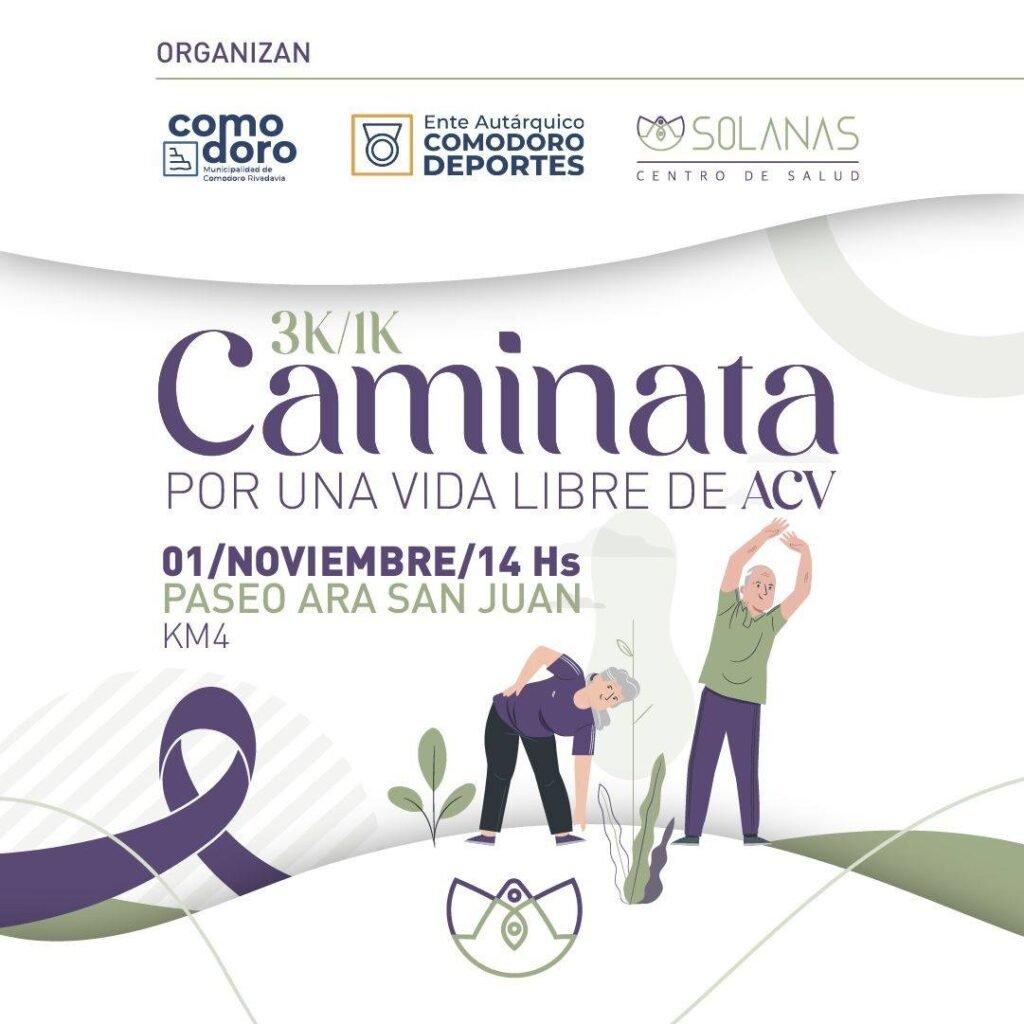 Bajo la organización de Solanas Centro de Salud, sumado al acompañamiento de la Municipalidad de Comodoro Rivadavia y Comodoro Deportes, se realizará por primera vez en nuestra ciudad la caminata “Por una vida libre de ACV”.