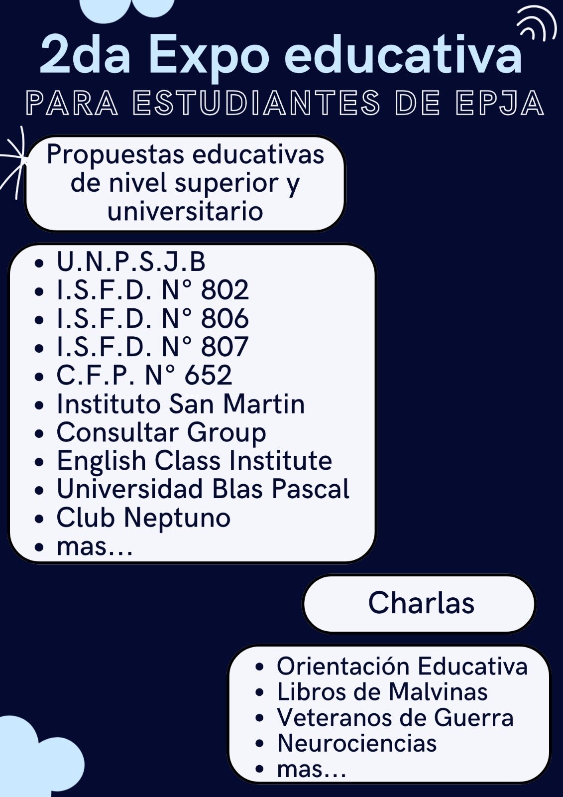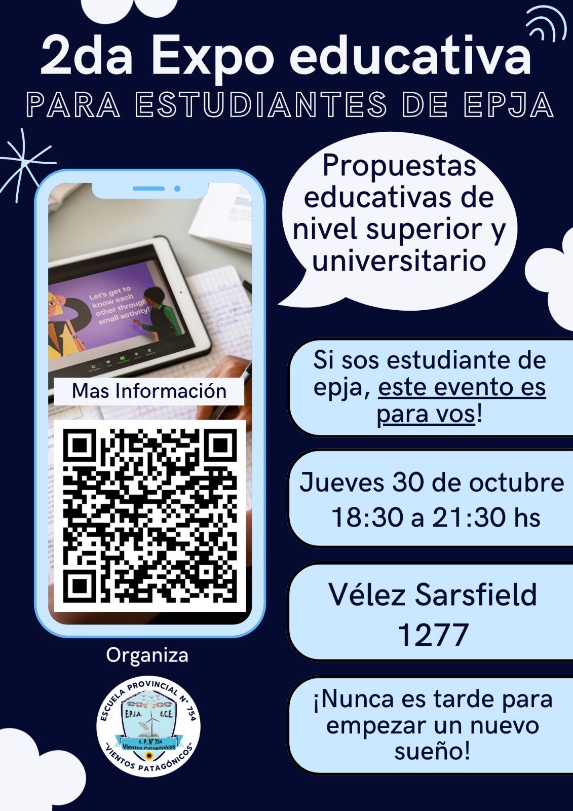 Este jueves desde las 18.30 horas en Vélez Sarsfield 1277 se desarrollará la segunda edición de la Expo Educativa, un evento que busca acercar a los alumnos de EPJA a las propuestas educativas de formación superior y universitarias.