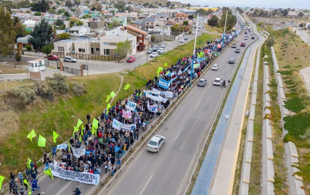 El candidato a diputado nacional por el frente Unidos Podemos marchó en Comodoro Rivadavia este miércoles junto miles de estudiantes, docentes, sindicatos y militantes en contra del veto del presidente Javier Milei a la ley de Financiamiento Universitario.