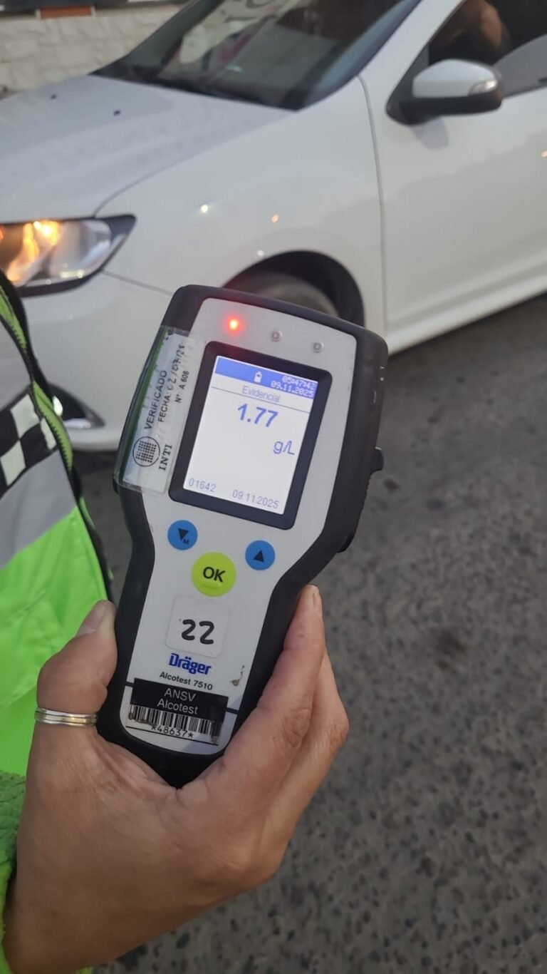 En total se labraron siete actas de infracción a la Ley Nacional de Tránsito por alcoholemia positiva, con la mayor graduación de 1.77 g/l.