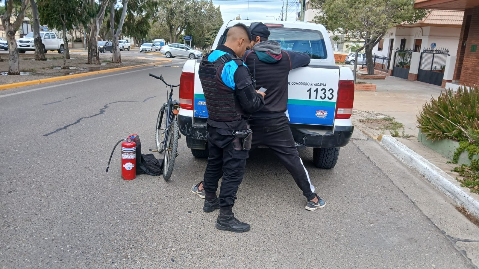 Sustrajo un matafuego de una camioneta y escapó en bicicleta