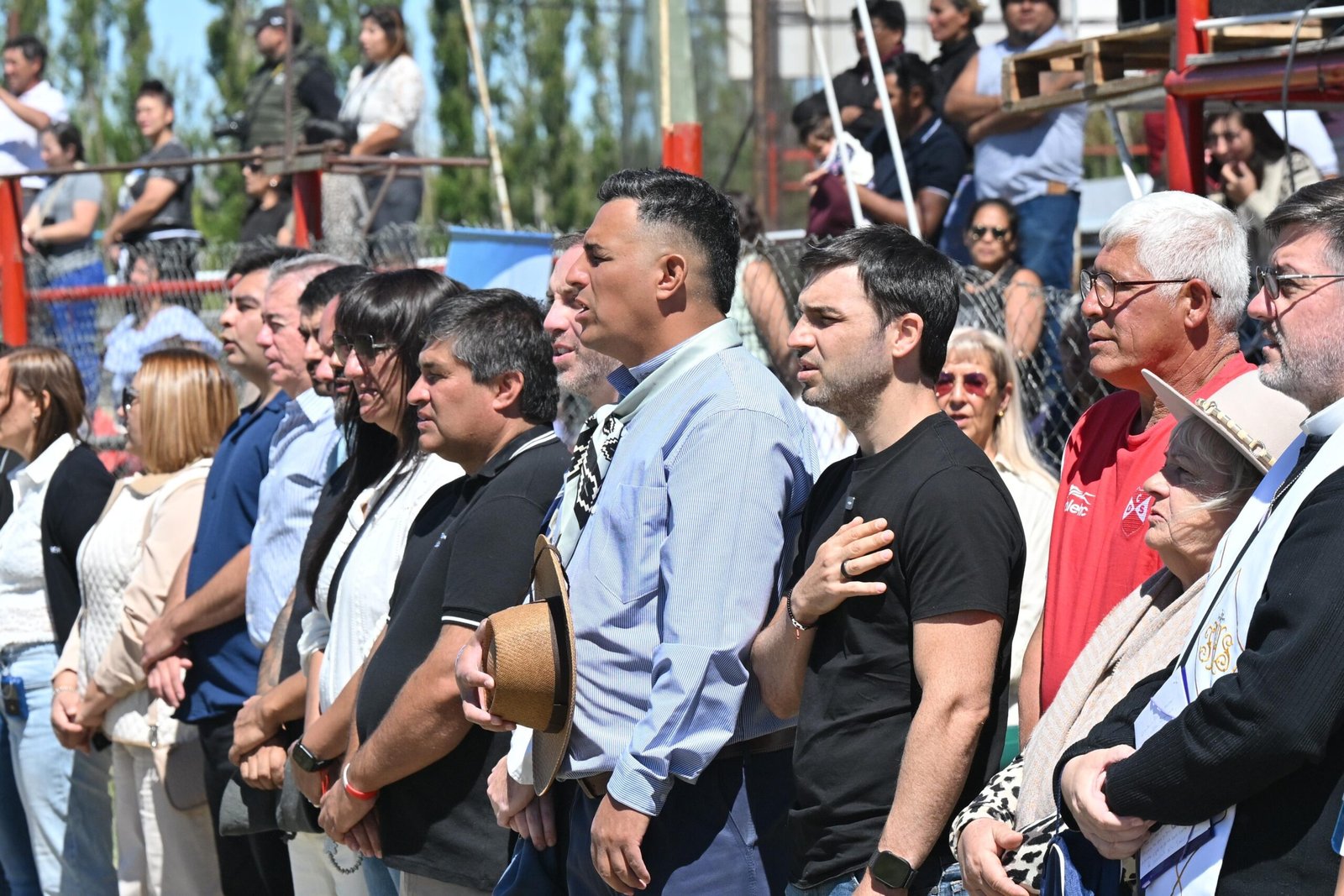 Acompañaron al mandatario el intendente local, Sebastián Balochi; el presidente del Club Deportivo Sarmiento, Jorge Mario Muñoz; el subsecretario de Protección Ciudadana, Guillermo Almirón; el cura párroco Ricardo César Costantini; concejales de la localidad; funcionarios provinciales y municipales; más de tres mil vecinos y visitantes y trescientos jinetes.