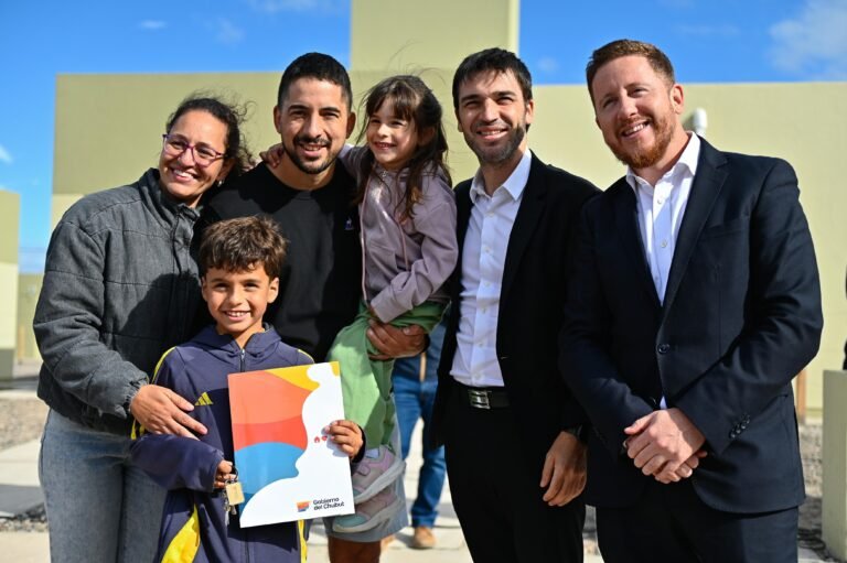 El titular del Ejecutivo chubutense encabezó el acto en el que una decena de familias de la localidad recibió las llaves de las esperadas viviendas, cuya obra fue reactivada y finalizada por la actual gestión. Cada unidad cuenta con todas las instalaciones necesarias para su correcto funcionamiento, a partir de una importante inversión provincial para la terminación del proyecto, que no registraba avances significativos desde que fuera licitado y adjudicado en 2022. “Lo más lindo de gobernar, más allá de las complicaciones coyunturales, es poder lograr estas cosas, que son actos de justicia para familias que vienen trabajando y pagando sus impuestos y que, en algunos casos, esperan por la casa propia hace más de diez años”, sostuvo Torres, agregando que “a diferencia de años atrás, cuando un gobernador se peleaba con un intendente y ese pueblo quedaba aislado, para este gobierno no existen ‘ellos’ y ‘nosotros’, porque gobernamos para todos los chubutenses”.
