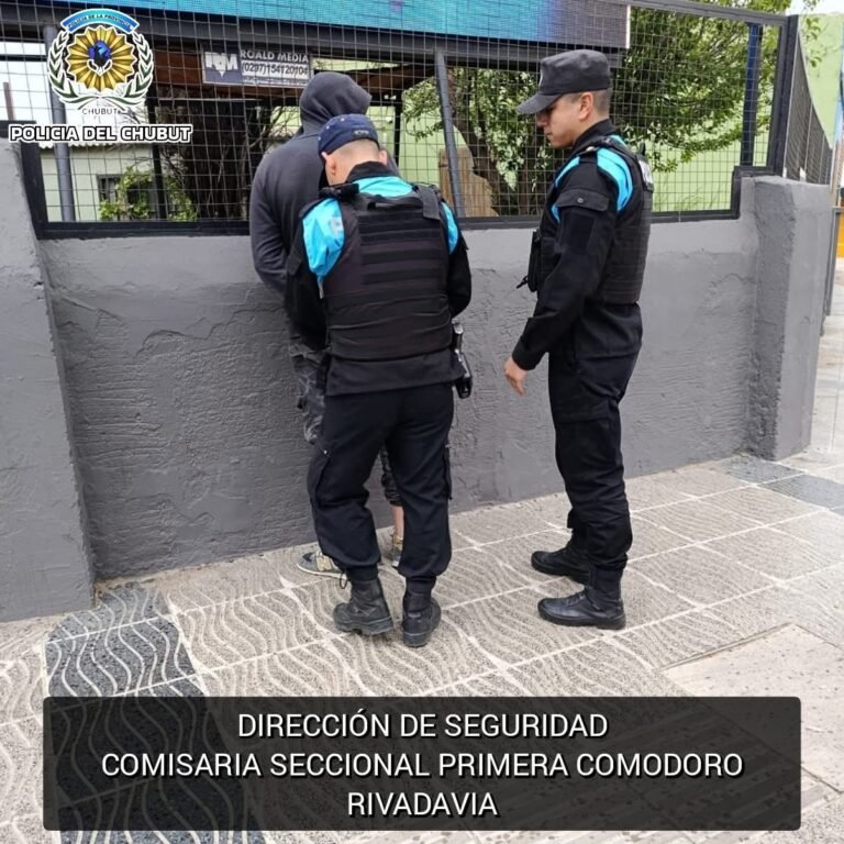 La Policía del Chubut, a través de la Unidad Regional Comodoro Rivadavia, detuvo a un hombre de 34 años en la intersección de las calles San Martín y Máximo Abasolo, luego de ser denunciado por robo.