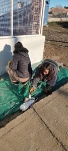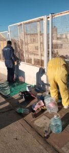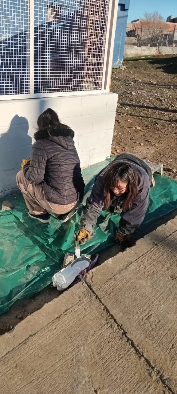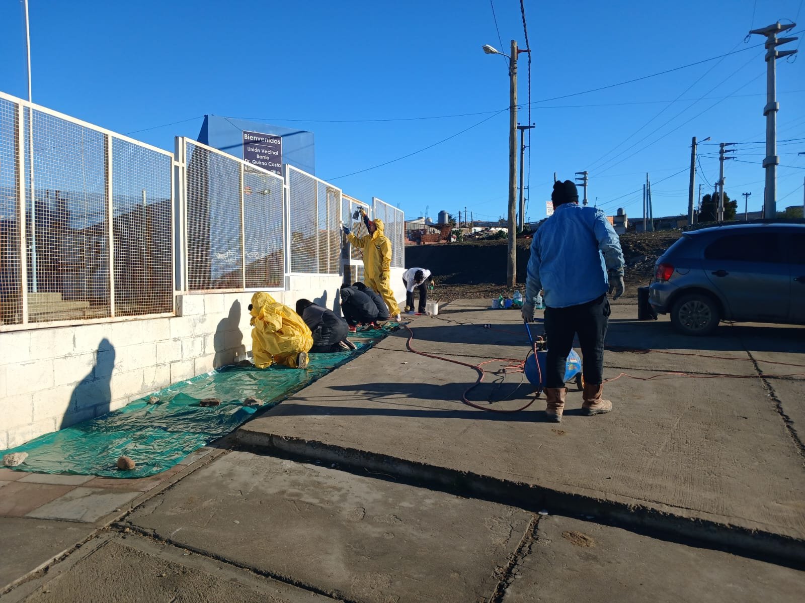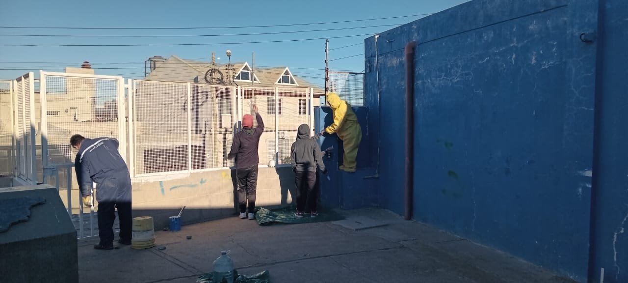 Sin mediar palabras los chicos se calzaron guantes, trajes de pintor y a pesar de ser feriado, decidieron pintar el cerco y los paredones de la sede vecinal.