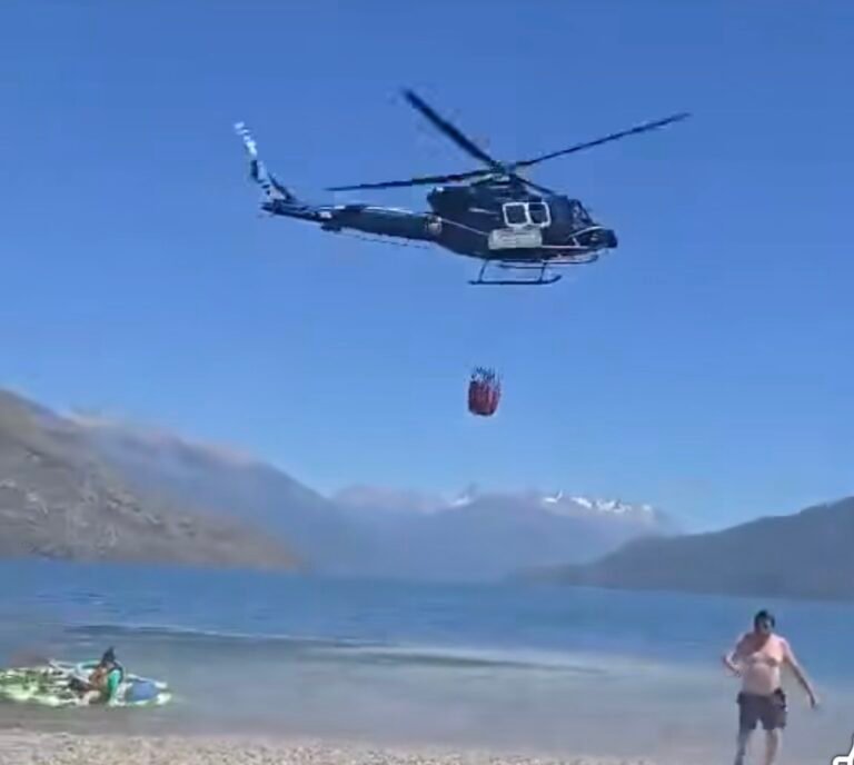 Un helicóptero descendió de forma imprudente a metros de personas que se bañaban en el Lago Puelo, generando pánico y alto riesgo.