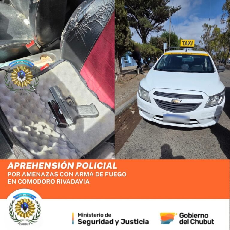 Un taxista de 34 años fue detenido este jueves por la mañana en Comodoro Rivadavia, luego de que un pasajero denunciara haber sido amenazado con un arma de fuego durante un viaje.