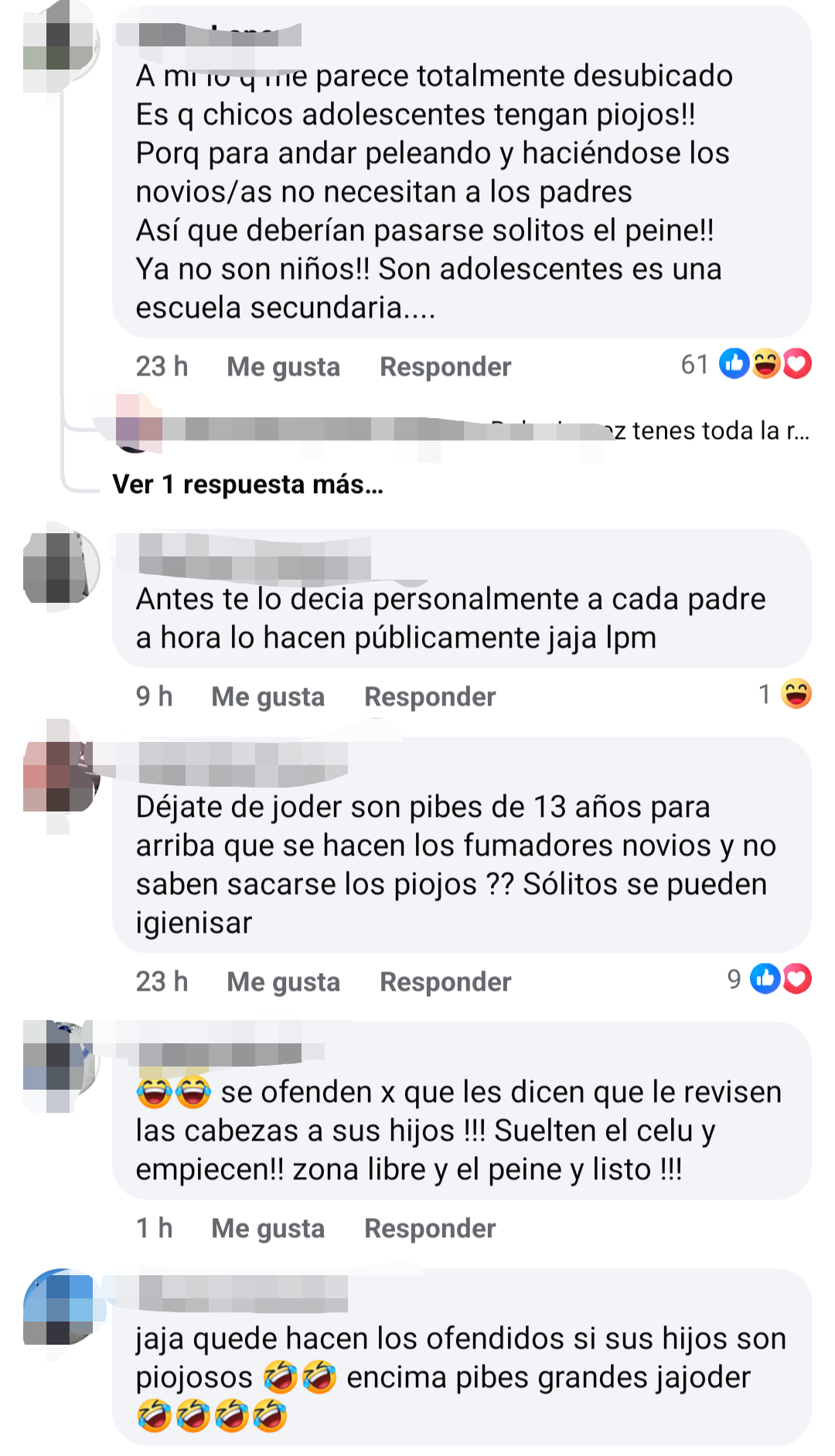 La reacción de los padres tras la publicación en la red social Facebook: