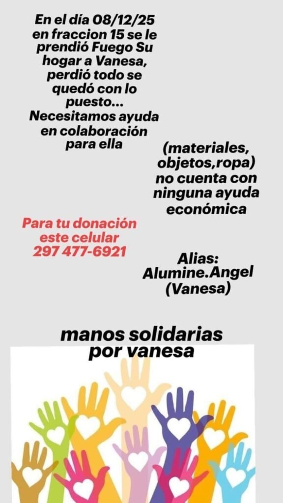 La comunidad se une en esta causa bajo el lema «Manos solidarias por Vanesa», buscando brindar apoyo a la afectada en estos momentos difíciles.