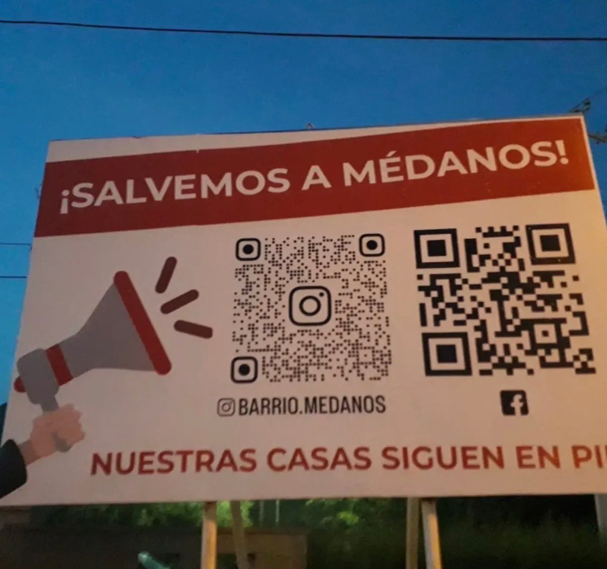 La comunidad de Médanos llama a la solidaridad y al apoyo de todos para defender sus hogares y su forma de vida. «Defender nuestras casas es defender nuestra historia. SALVEMOS A MÉDANOS!», concluyeron.