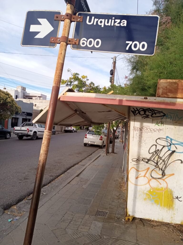 Vecinos de la zona alertaron sobre un escaparate ubicado en la intersección de Rawson y Urquiza que se encuentra en estado de abandono y a punto de desmoronarse, lo que representa un peligro para la seguridad de los transeúntes.